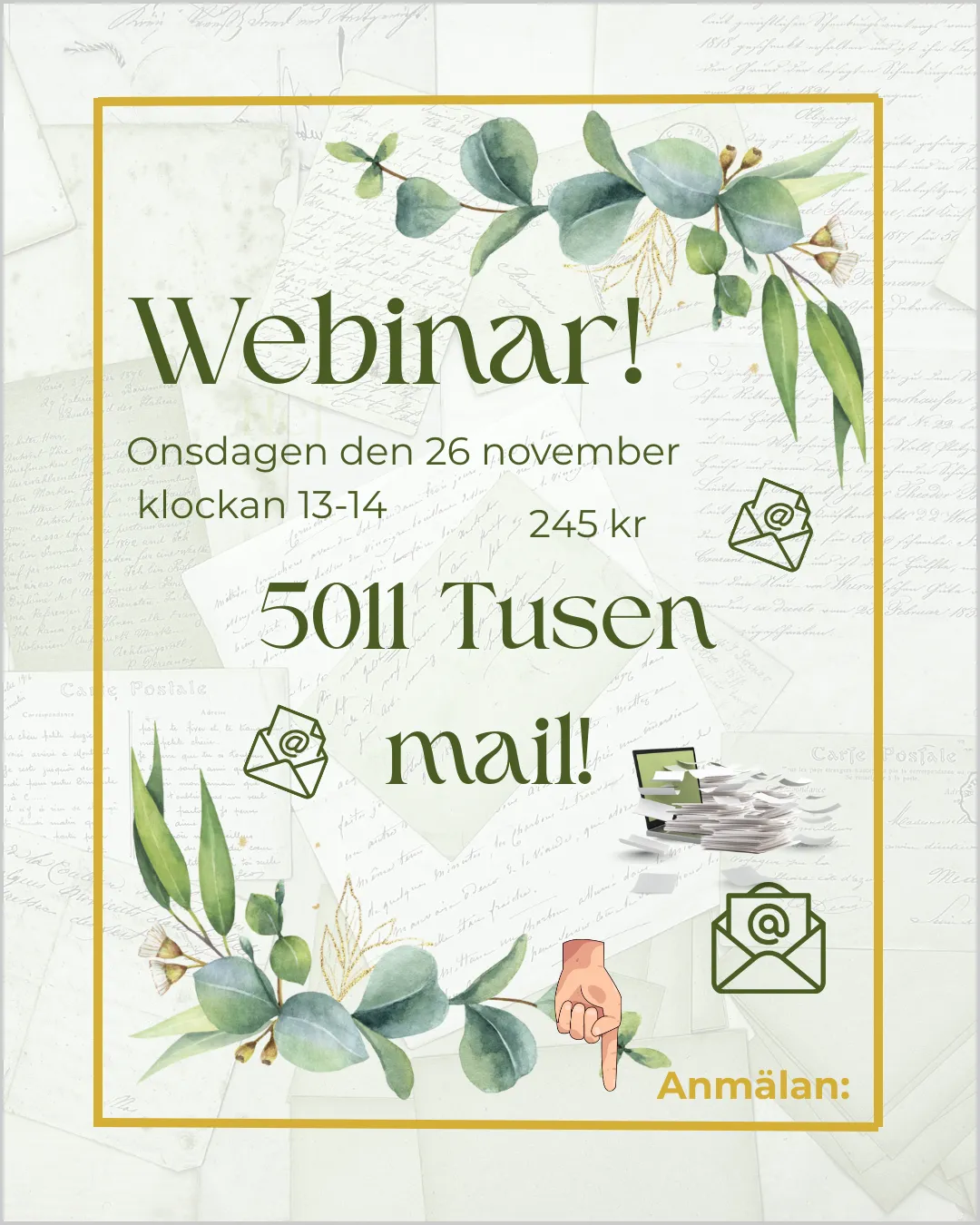 Du får mitt inspirationsbrev ungefär en gång i månaden, med uppehåll under sommaren.